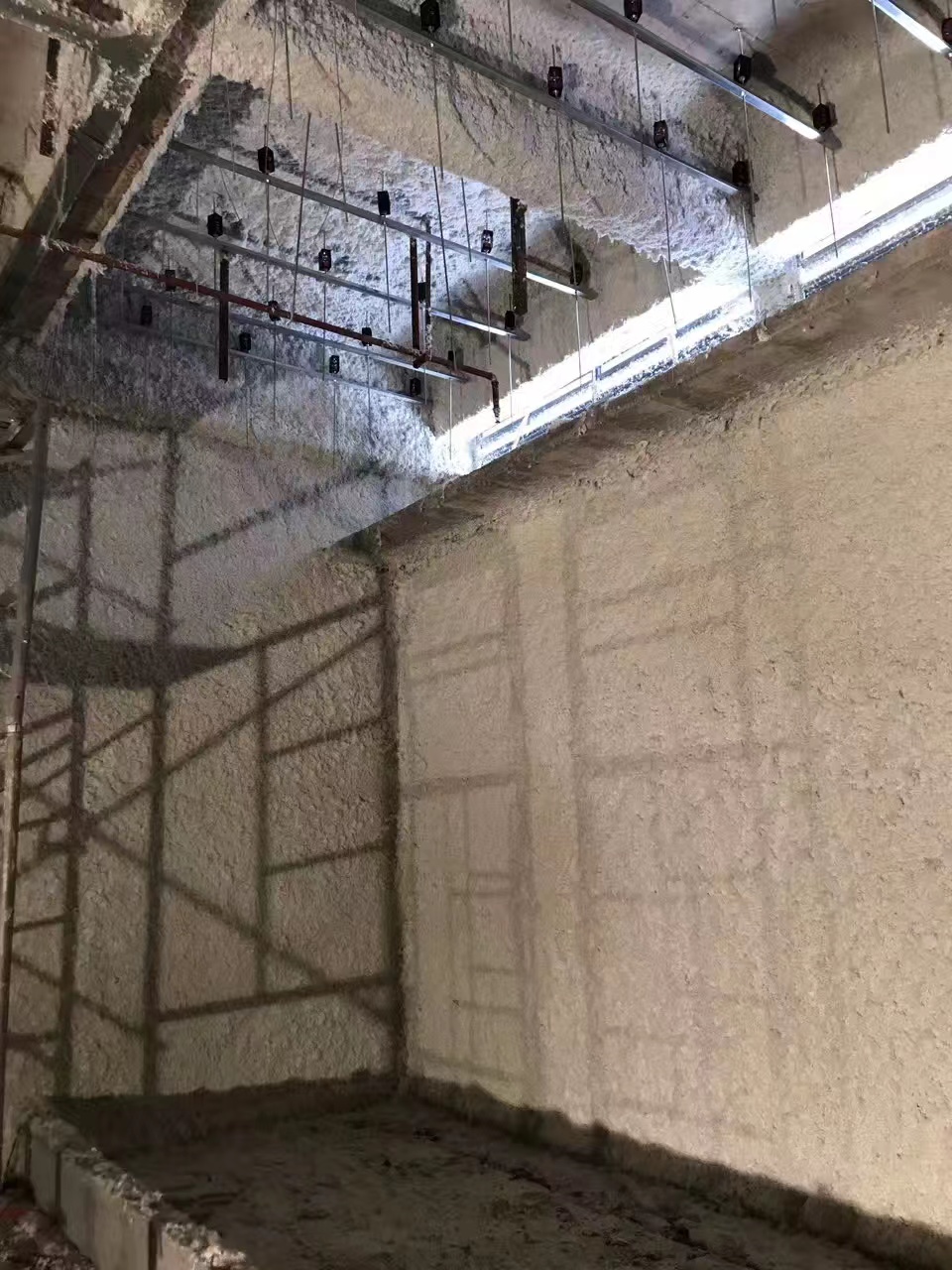7.噴涂后形成的復(fù)雜孔隙起到吸音、保溫作用。
